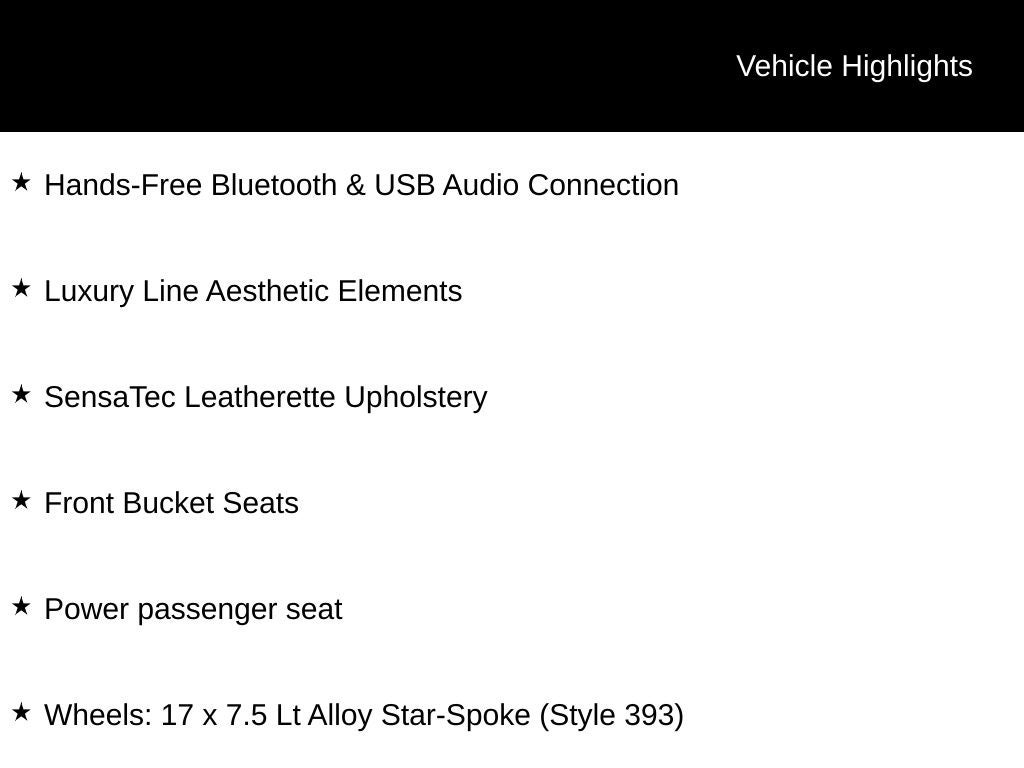 - Wheels: 17 x 7.5 Lt Alloy Star-Spoke (Style 393)