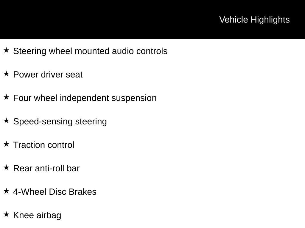 - Radio w/Seek-Scan, Clock, Speed Compensated Volume Control, Steering Wheel Controls and Radio Data System