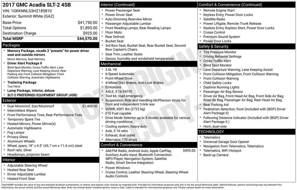 - Vehicle Name: GMC Acadia