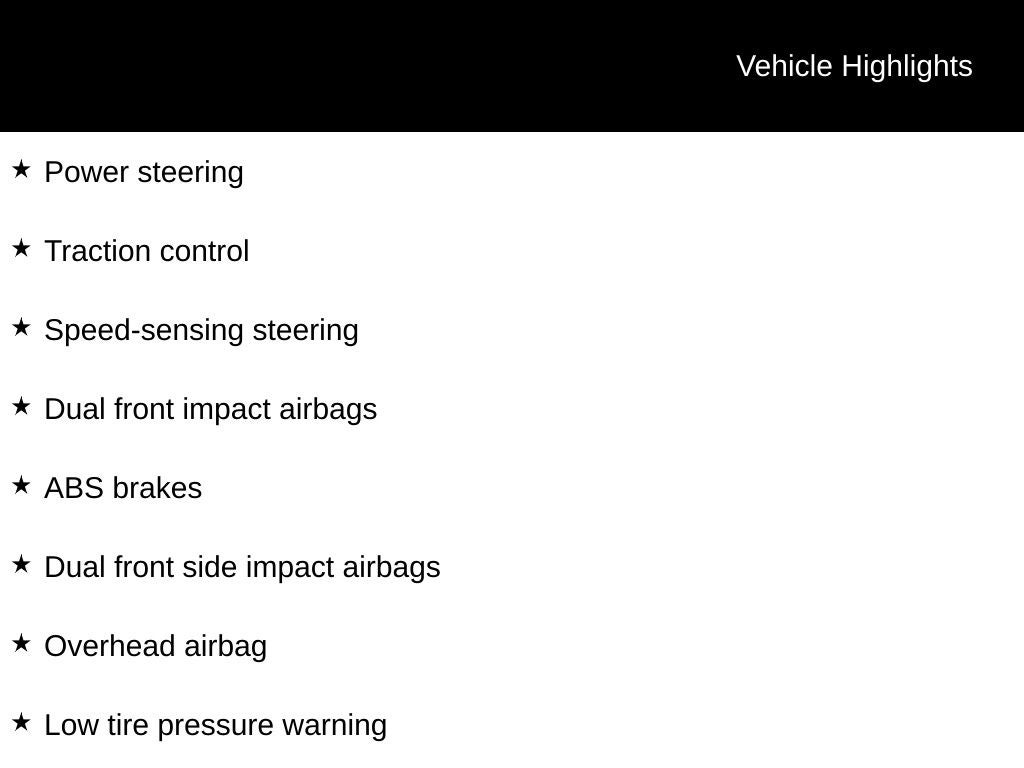 - Front Disc/Rear Drum Brakes w/4-Wheel ABS, Front Vented Discs, Brake Assist and Hill Hold Control