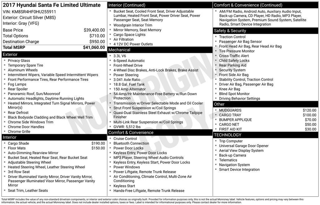 This online window sticker is provided for informational purposes only. Vehicle features, options, pricing and other information are subject to change. See your Hyundai dealer and the Monroney label affixed to the actual vehicle for the most up-to-date specifications and information.