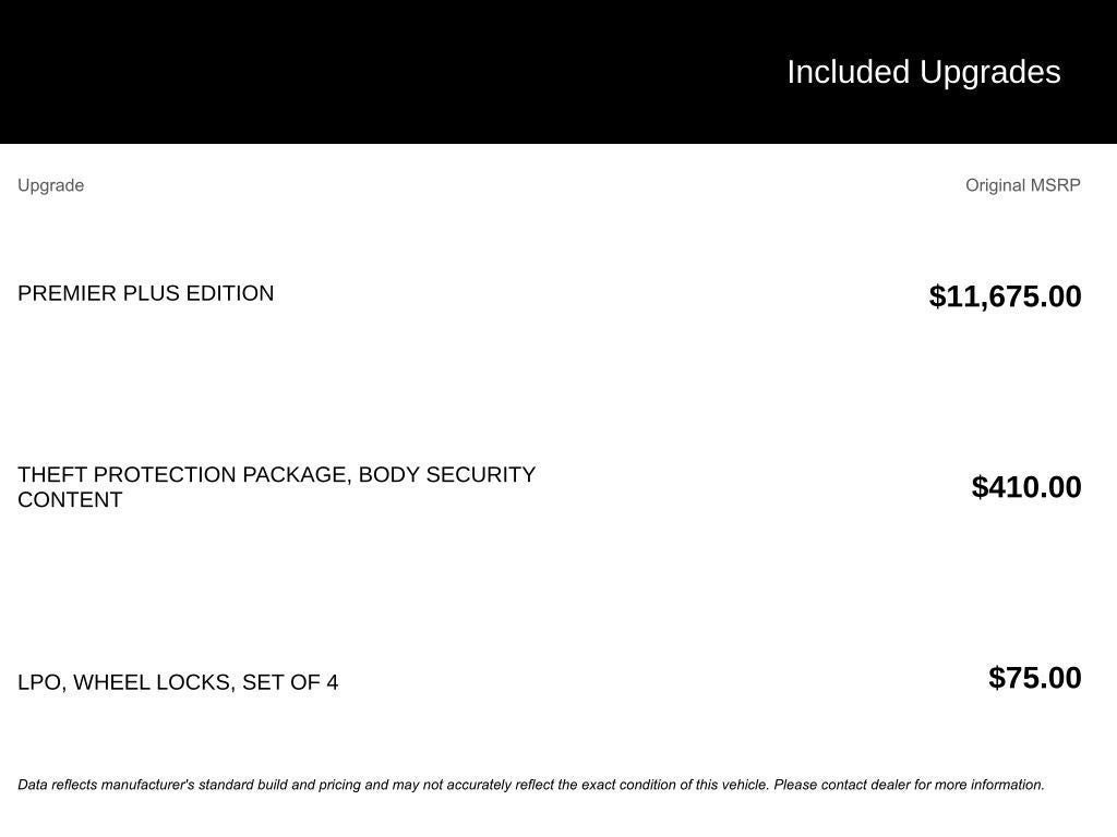 - Enhanced Driver Alert Package includes (UEU) Forward Collision Alert, (TQ5) IntelliBeam headlamps, (UHY) Low Speed Forward Automatic Braking, (UHX) Lane Keep Assist with Lane Departure Warning and Safety Alert Seat (When (Y66) Adaptive Cruise Control - Advanced is ordered, RPO Code (Y86) will be removed. All content of (Y86) will remain standard except (UHY) Low Speed Forward Automatic Braking, which is replaced by (UGN) Forward Automatic Braking.)