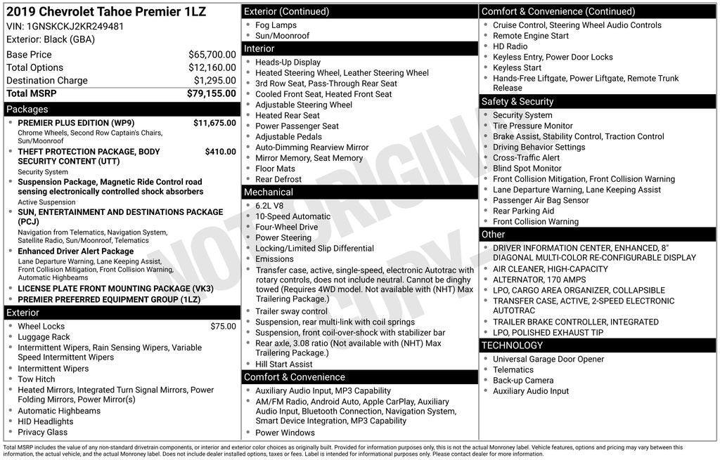 Whether you're embarking on a family adventure, towing a trailer, or simply enjoying the open road, this 2019 Chevrolet Tahoe Premier is the epitome of capability, comfort, and style. Experience the difference for yourself and schedule a test drive today.