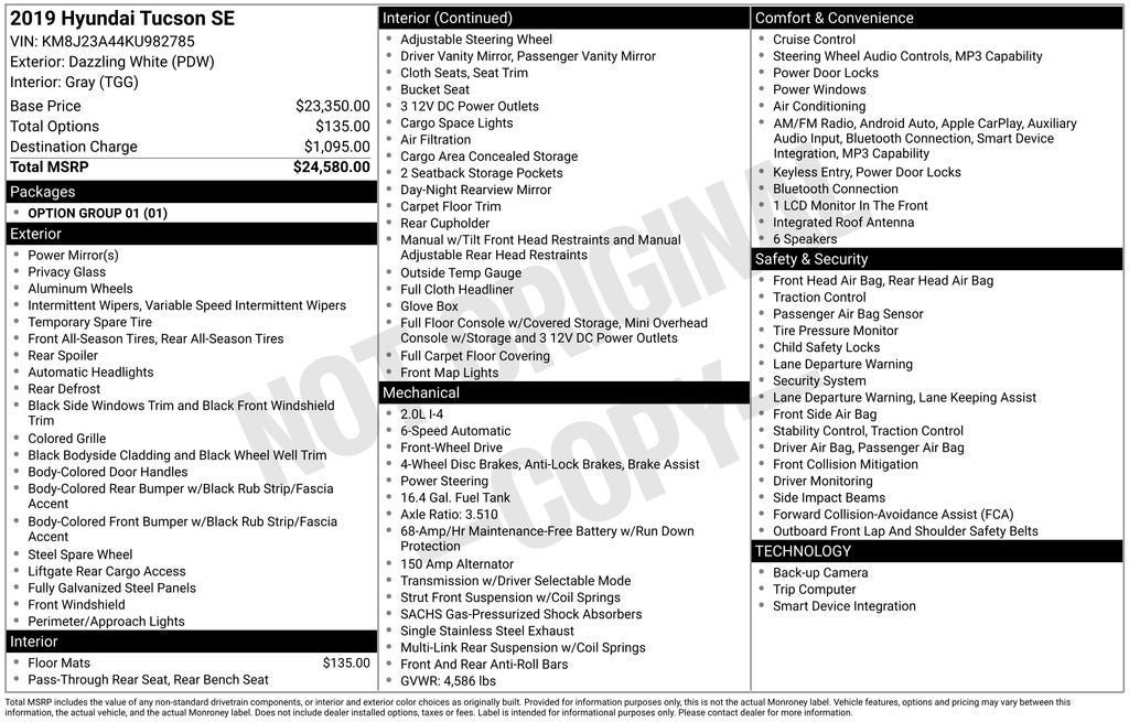 This online window sticker is provided for informational purposes only. Vehicle features, options, pricing and other information are subject to change. See your Hyundai dealer and the Monroney label affixed to the actual vehicle for the most up-to-date specifications and information.