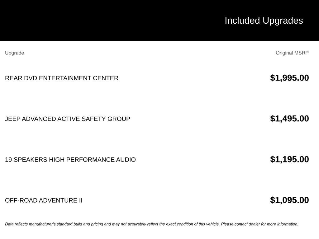 - 4-Wheel Disc Brakes w/4-Wheel ABS, Front Vented Discs, Brake Assist, Hill Descent Control and Hill Hold Control