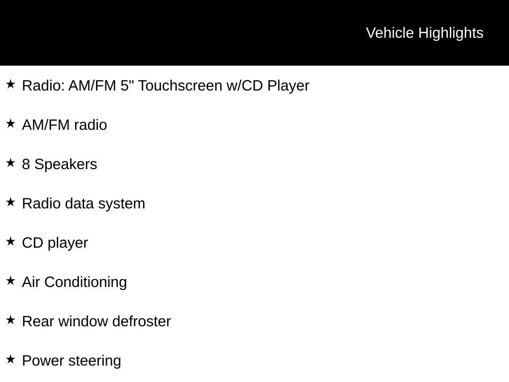 - Radio: AM/FM 5" Touchscreen w/CD Player -inc: Composition Color, USB input, 8-speaker sound system and Bluetooth® connectivity
