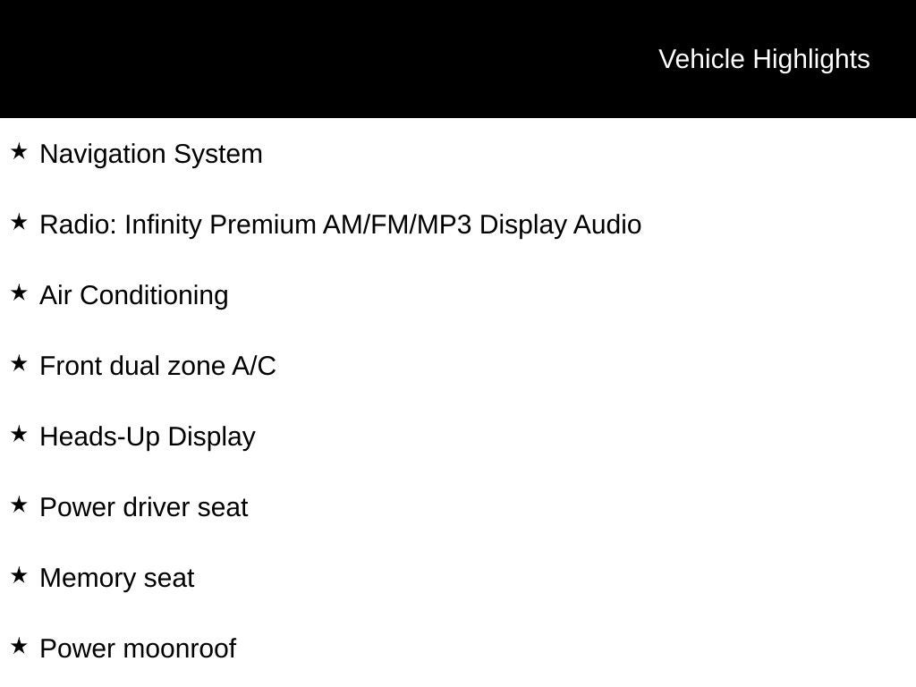 - Radio: Infinity Premium AM/FM/MP3 Display Audio -inc: 630-Watt, 8" touchscreen, Apple CarPlay & Android Auto, Bluetooth® hands-free w/wireless audio streaming, voice recognition, steering wheel audio, cruise and phone controls, dual front and rear 2.1 amp USB charge ports, SiriusXM, HD Radio, Blue Link connected car system, 12-speakers including subwoofer, external amplifier, Clari-fi music restoration technology, QuantumLogic surround, onboard navigation system w/traffic flow including incident data via HD Radio (HERE) and wireless device charging