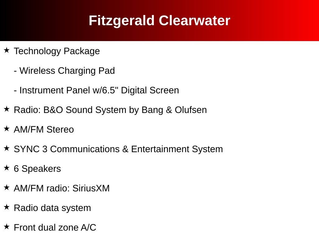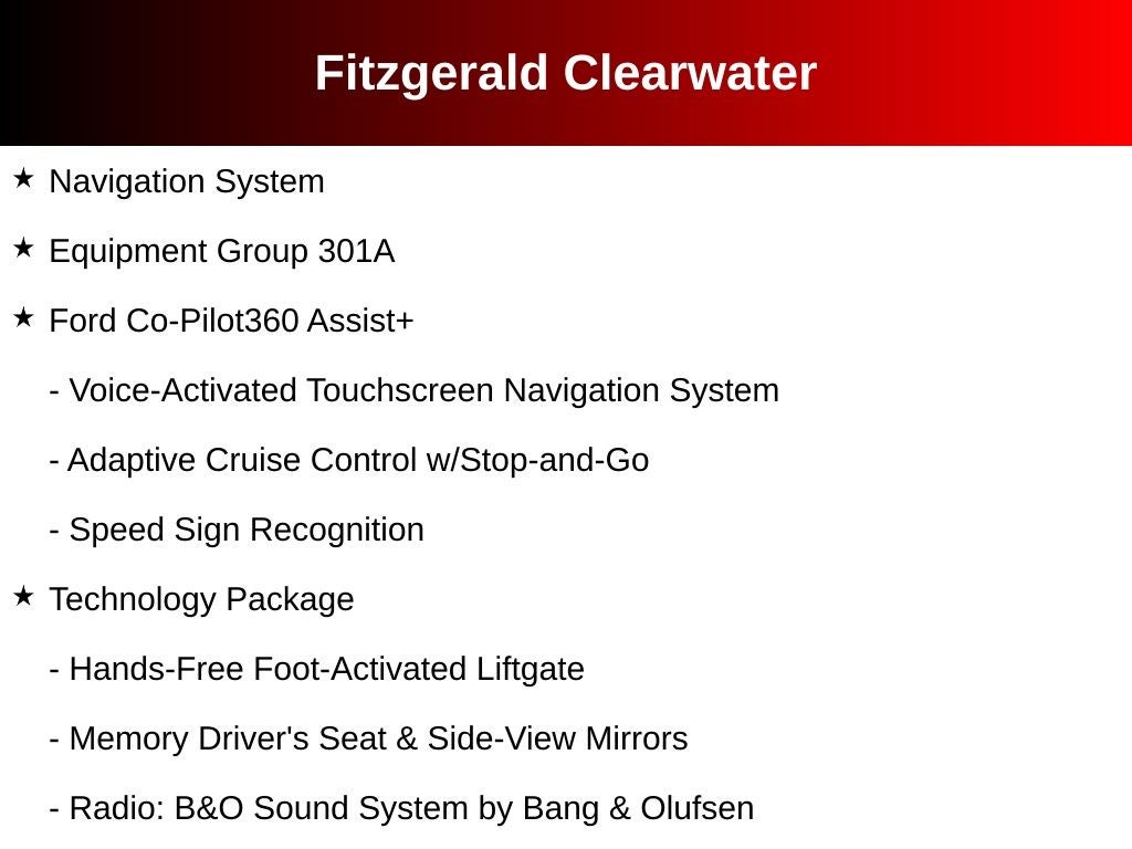 - SYNC 3 Communications & Entertainment System -inc: enhanced voice recognition communications and entertainment system, 8" LCD capacitive touchscreen in center stack w/swipe capability, AppLink, 911 Assist, Apple CarPlay and Android Auto compatibility, 2 smart-charging USB ports and pinch-to-zoom capability is included when equipped w/available voice-activated touchscreen navigation system