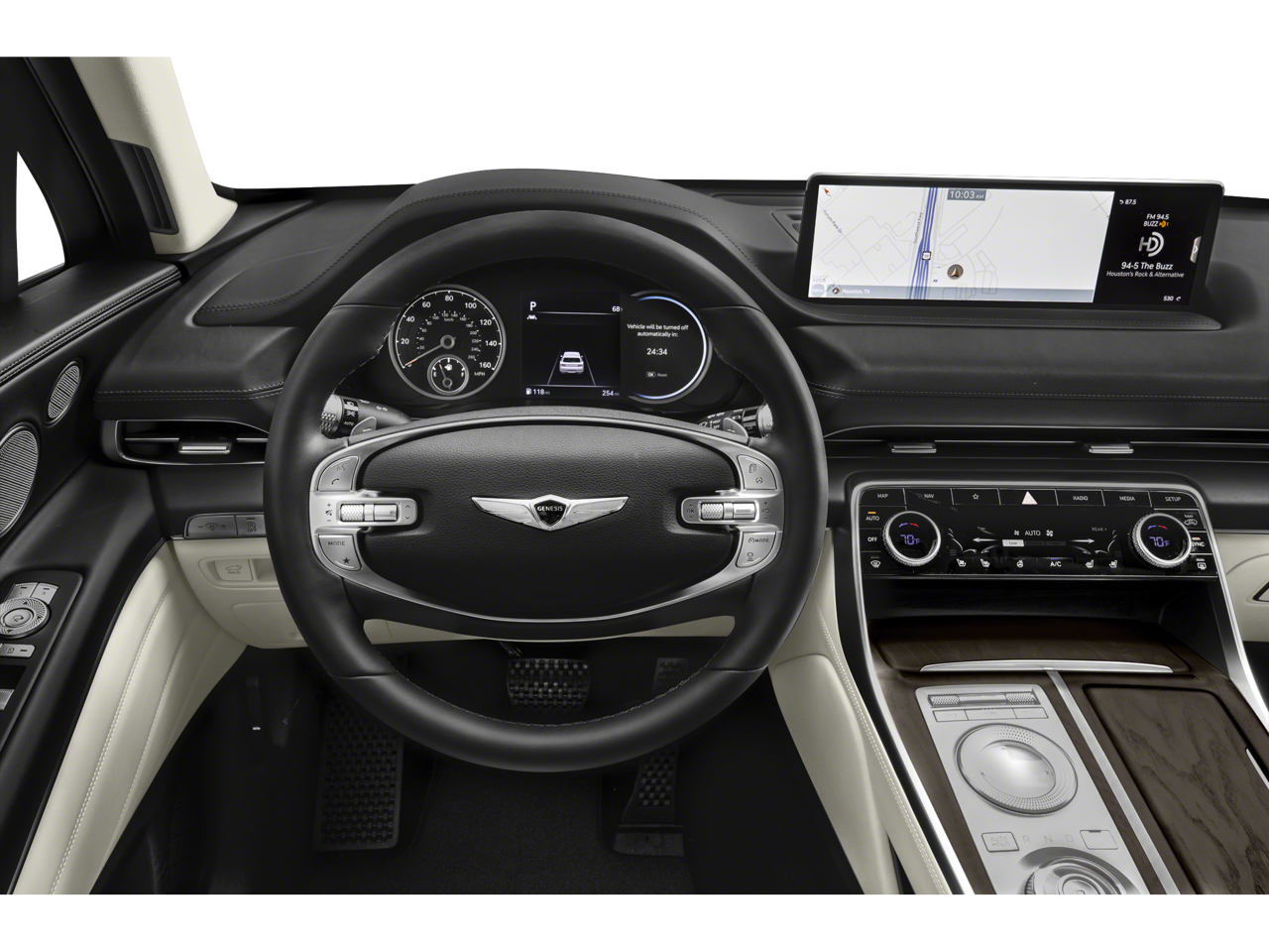 - Radio: AM/FM/SiriusXM/HD Premium Audio System -inc: internal amplifier, integrated navigation, 14.5" HD LCD screen, Apple Carplay and Android Auto, Bluetooth® hands-free phone system w/audio streaming, steering wheel controls, 2 front and 2 rear USB ports, 2 12v power outlets, front wireless device charger and Genesis Connected Services