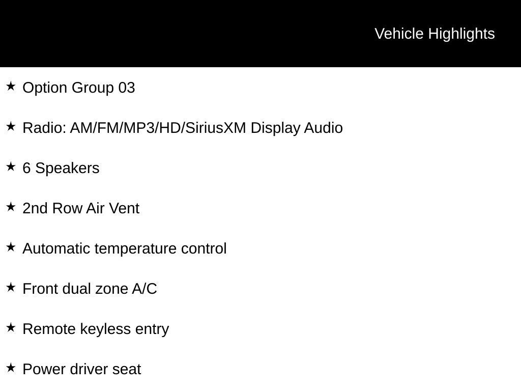 - Radio w/Seek-Scan, Clock, Speed Compensated Volume Control, Steering Wheel Controls, Voice Activation and Radio Data System