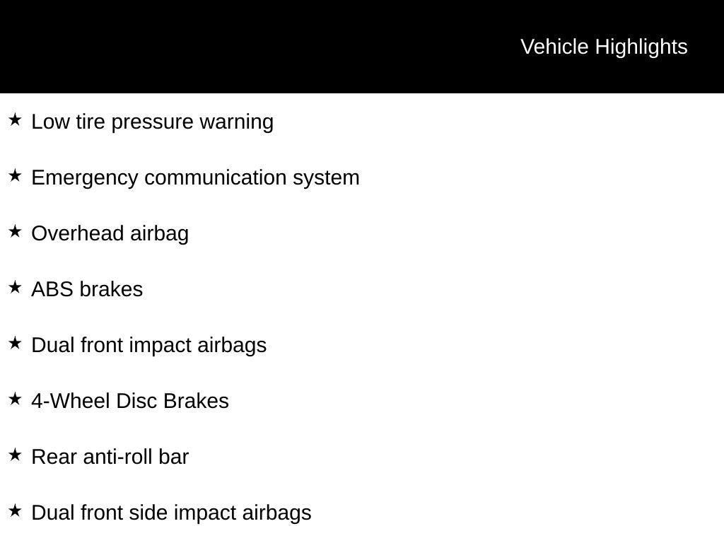 - 4-Wheel Disc Brakes w/4-Wheel ABS, Front Vented Discs, Brake Assist, Hill Hold Control and Electric Parking Brake