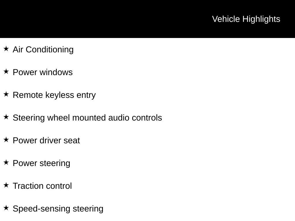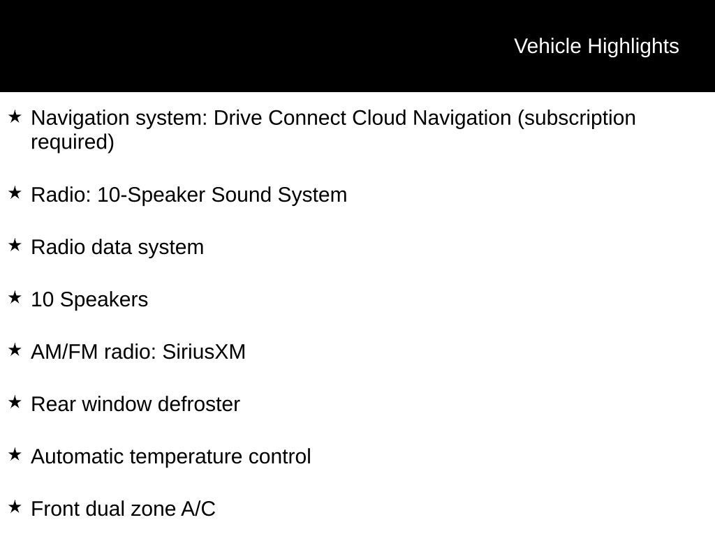 - Radio w/Seek-Scan, Clock, Speed Compensated Volume Control, Steering Wheel Controls, Voice Activation, Radio Data System and External Memory Control