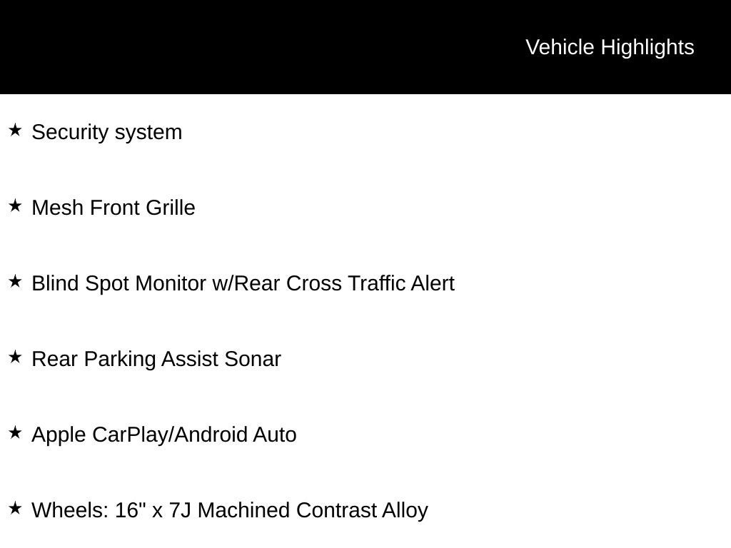 - Wheels: 16" x 7J Machined Contrast Alloy