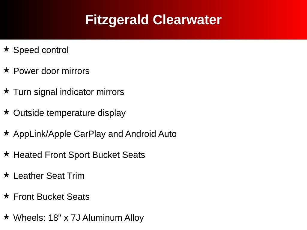 ** You will love our NO HAGGLE, NO HASSLE PRICING here at Fitzgerald Auto Mall. Ask us about our BUYER PROTECTION PLAN, LOANER CAR PROGRAMS, AND FREE Vehicle History Report COMES WITH A WRITTEN FITZWAY CHECKOUT COVERING ALL MAJOR ITEMS! PROTECTED BY THE REMAINING BALANCE OF THE ORIGINAL FACTORY WARRANTY AND OUR 3 MONTH/4K MILE COMPREHENSIVE COVERAGE OF ALL MAJOR SYSTEMS AND COMPONENTS. WE OFFER A 10 DAY/500 MILE WRITTEN MONEY BACK GUARANTEE!! 30 DAY/1500 MILE EXCHANGE POLICY!! No Added Market Adjustments or Hidden Fees! Transparency You Can Trust, That's The FitzWay! Transparency You Can Trust.