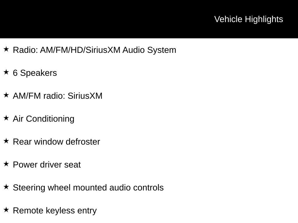 - Radio w/Seek-Scan, Clock, Speed Compensated Volume Control, Aux Audio Input Jack and Steering Wheel Controls
