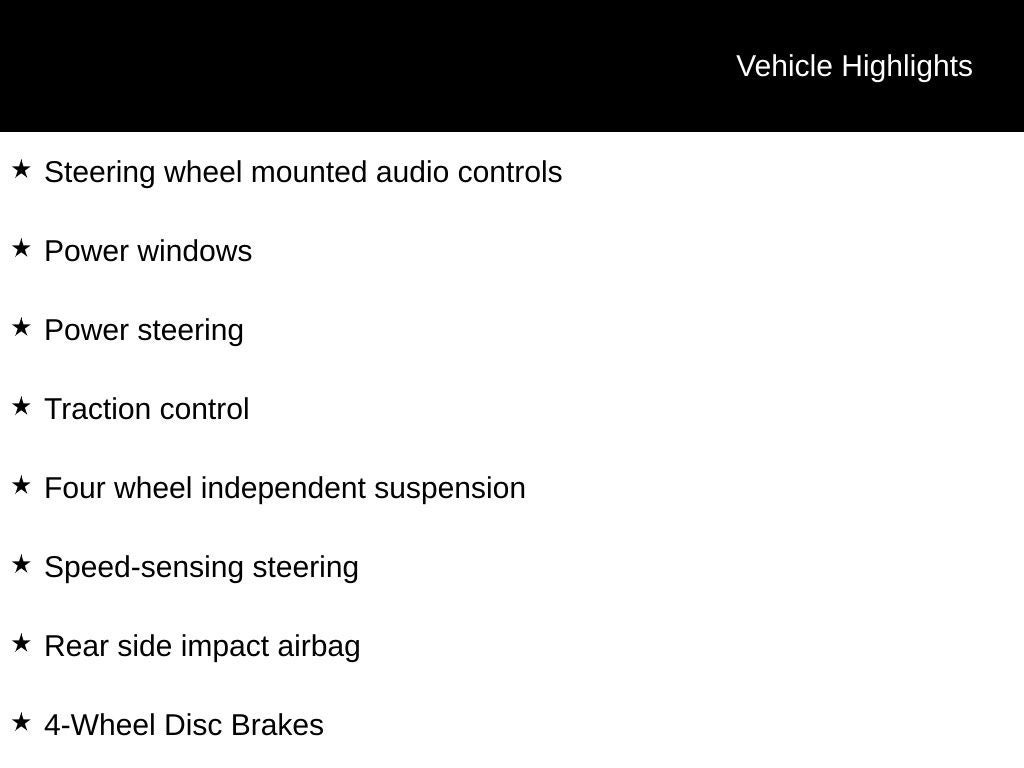 - Radio w/Seek-Scan, Clock, Speed Compensated Volume Control, Steering Wheel Controls, Voice Activation and Radio Data System