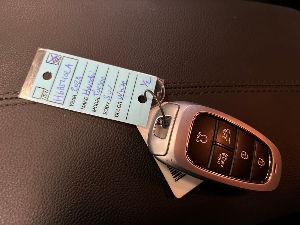 ** ONE OWNER ** HYUNDAI CERTIFIED ** 2023 Hyundai Tucson Serenity White Pearl SEL FWD 8-Speed Automatic with SHIFTRONIC 2.5L I4 DGI DOHC 16V LEV3-ULEV70 187hp 3.648 Axle Ratio, 4-Wheel Disc Brakes, 6 Speakers, ABS brakes, Air Conditioning, Alloy wheels, AM/FM radio: SiriusXM, Apple CarPlay & Android Auto, Auto High-beam Headlights, Brake assist, Bumpers: body-color, Cargo Cover, Cargo Net, Cargo Tray, Carpeted Floor Mats, Delay-off headlights, Driver door bin, Driver vanity mirror, Dual front impact airbags, Dual front side impact airbags, Electronic Stability Control, Emergency communication system: Blue Link Connected Car Service (3-year complimentary subscription), First Aid Kit, Four wheel independent suspension, Front anti-roll bar, Front Bucket Seats, Front Center Armrest, Front reading lights, Fully automatic headlights, H-Tex Seat Trim, Heated door mirrors, Heated Front Bucket Seats, Heated front seats, Illuminated entry, Low tire pressure warning, Occupant sensing airbag, Option Group 01, Outside temperature display, Overhead airbag, Overhead console, Panic alarm, Passenger door bin, Passenger vanity mirror, Power door mirrors, Power driver seat, Power Liftgate, Power steering, Power windows, Radio data system, Radio: AM/FM/HD/SiriusXM Audio System, Rear anti-roll bar, Rear seat center armrest, Rear window defroster, Rear window wiper, Remote keyless entry, Roof rack: rails only, Security system, Speed control, Split folding rear seat, Spoiler, Stain & Odor Resistant Cloth Seat Trim, Steering wheel mounted audio controls, Tachometer, Telescoping steering wheel, Tilt steering wheel, Traction control, Trip computer, Turn signal indicator mirrors, Variably intermittent wipers, Wheel Locks, Wheels: 17 x 7.0J Alloy.