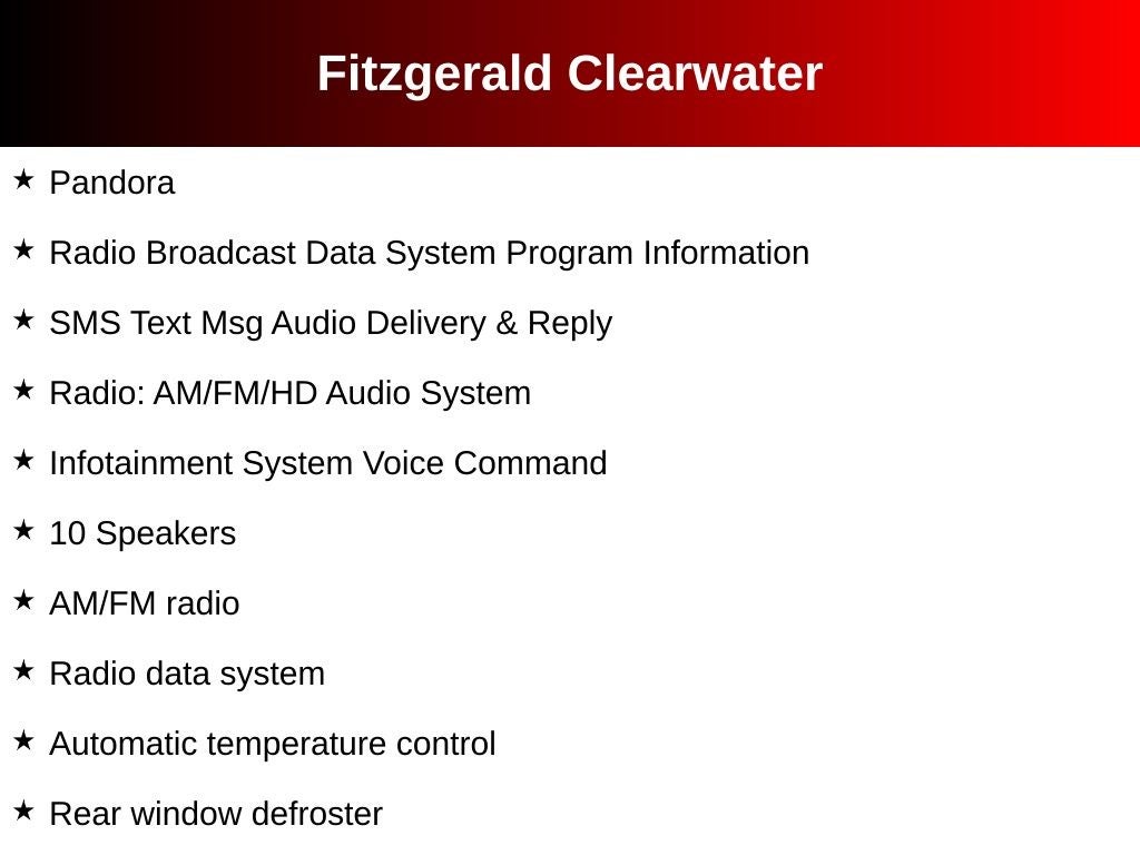 • Interior Trim -inc: Piano Black Instrument Panel Insert, Piano Black Door Panel Insert and Metal-Look Interior Accents