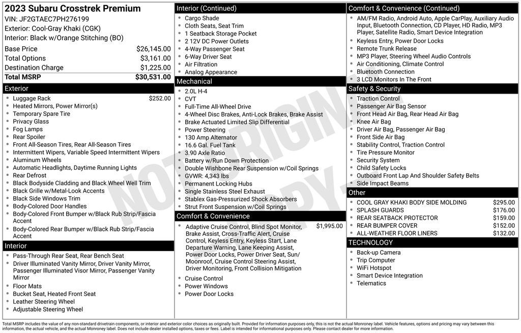 - Vehicle Name: Subaru Crosstrek