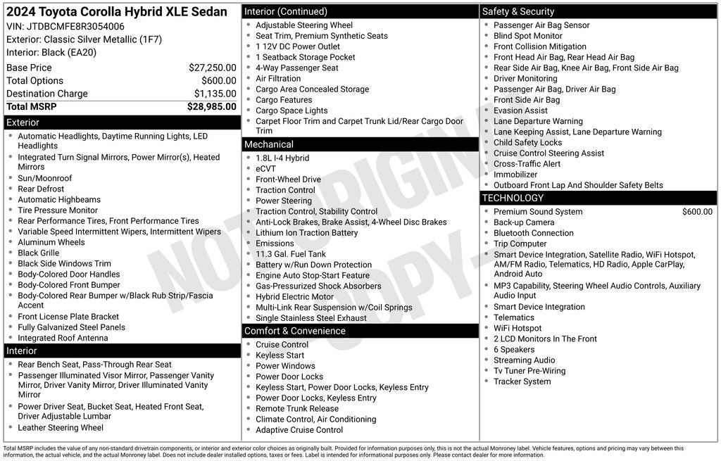 This online window sticker is provided for informational purposes only. Vehicle features, options, pricing and other information are subject to change. See your Hyundai dealer and the Monroney label affixed to the actual vehicle for the most up-to-date specifications and information.