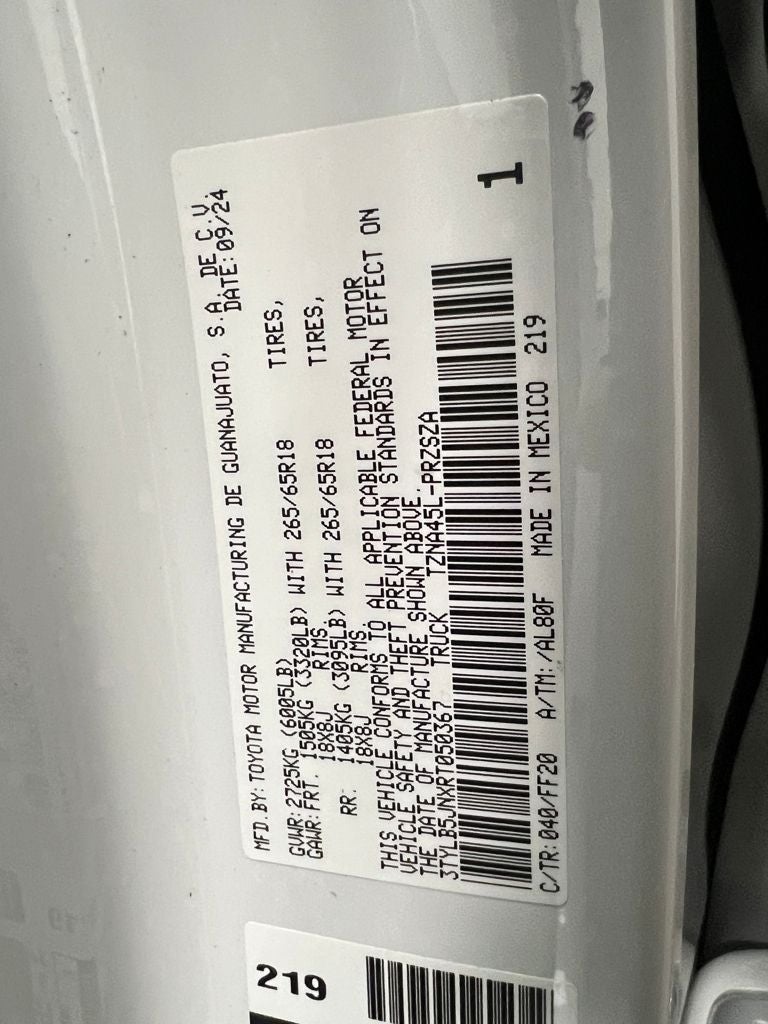 ** ONE OWNER ** 2024 Toyota Tacoma Ice Cap SR5 4WD 8-Speed Automatic 2.4L 4-Cylinder 4WD, Air Conditioning, AM/FM radio: SiriusXM, Apple CarPlay/Android Auto, Auto-dimming Rear-View mirror, Emergency communication system: Safety Connect (1-year trial), Exterior Parking Camera Rear, Front Bucket Seats, Front fog lights, Low tire pressure warning, Outside temperature display, Radio: 8 Toyota Audio Multimedia, Remote keyless entry, Speed control, Spray-On Bed Liner (TMS), Steering wheel mounted audio controls, Wheels: 18 (TMS) (PPO).