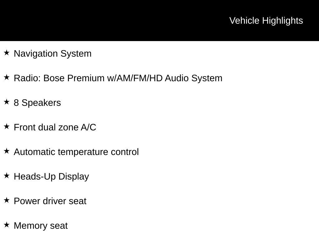 - Radio: Bose Premium w/AM/FM/HD Audio System -inc: 12.3" color touchscreen w/onboard navigation, digital 8-channel amp (w/custom equalization, digital signal processing and dynamic speed compensation), 8 speakers (1 twiddler on center of instrument panel, 2 tweeters, 2 front door, 2 rear door, 1 woofer on rear quarter panel), SiriusXM satellite radio system (3-month trial subscription), wireless Apple CarPlay and Android Auto integration, dynamic voice recognition, controller OTA update capability, map and multimedia software OTA update capability, Blue Link connected car system and USB connectivity